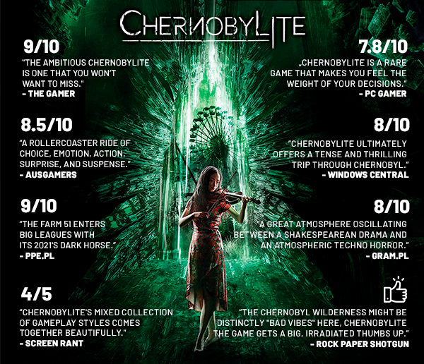 Chernobylite — это научно-фантастическая ролевая игра в жанре Survival Horror от разработчиков Farm 51 . Находясь в гиперреалистичной 3D-сканированной пустоши чернобыльской зоны отчуждения, вы возьмете на себя роль Игоря, физика и бывшего сотрудника Чернобыльской электростанции, возвращающегося в Припять, чтобы расследовать загадочное исчезновение своей невесты, 30 лет. лет назад.